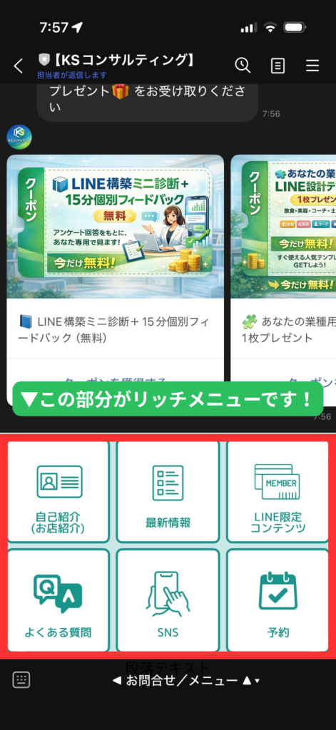 公式LINEのトーク画面の下に表示される